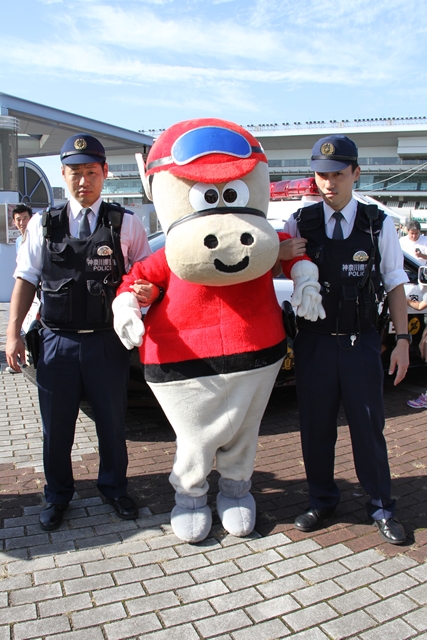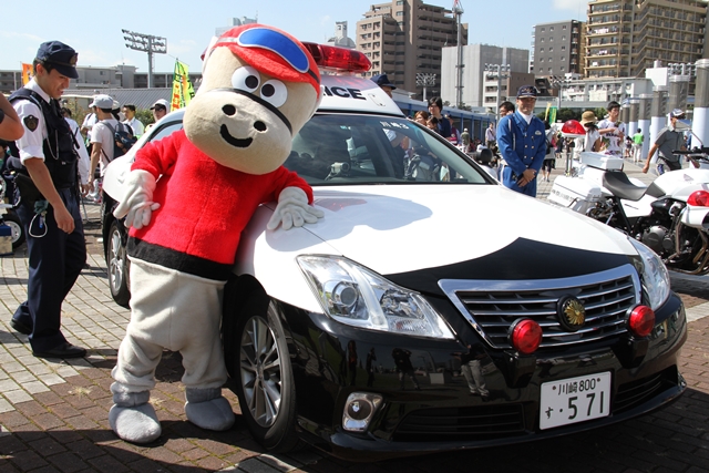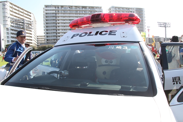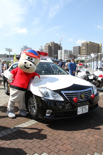 ヒーローカツマルくん パトカーに寄りかかってキメのポーズ