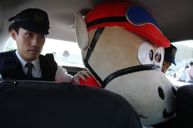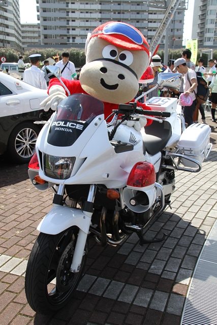 パトカーだと頭がつっかえそうだから 白バイの方がいいかな?