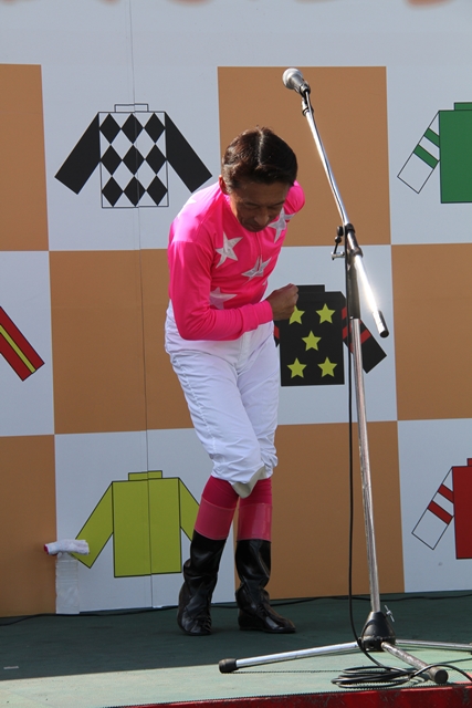 ![]() ステージ終了後の内田利雄騎手 暑い陽射しの中 熱い歌 お疲れ様でした。 | ||||