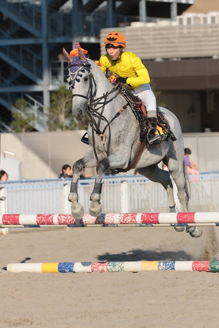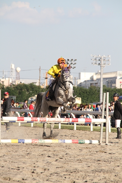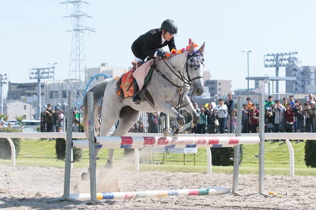 ![]() 障害飛越は馬場内に設置された障害を 規定時間内に決められた経路で飛越して競います。 | ||||