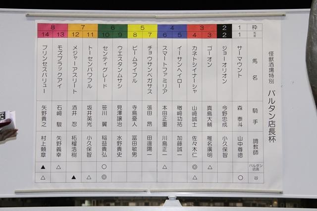 8R終了後 ウィナーズサークルにて 当日のメインR 「怪獣酒場特別 バルタン店長杯」 の場立予想が行われました。